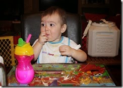 I took the back off of Savannah’s high chair so it’s now a booster seat and pulled the chair up to the table instead of using the tray. She ate more the first meal after than she had in a while!